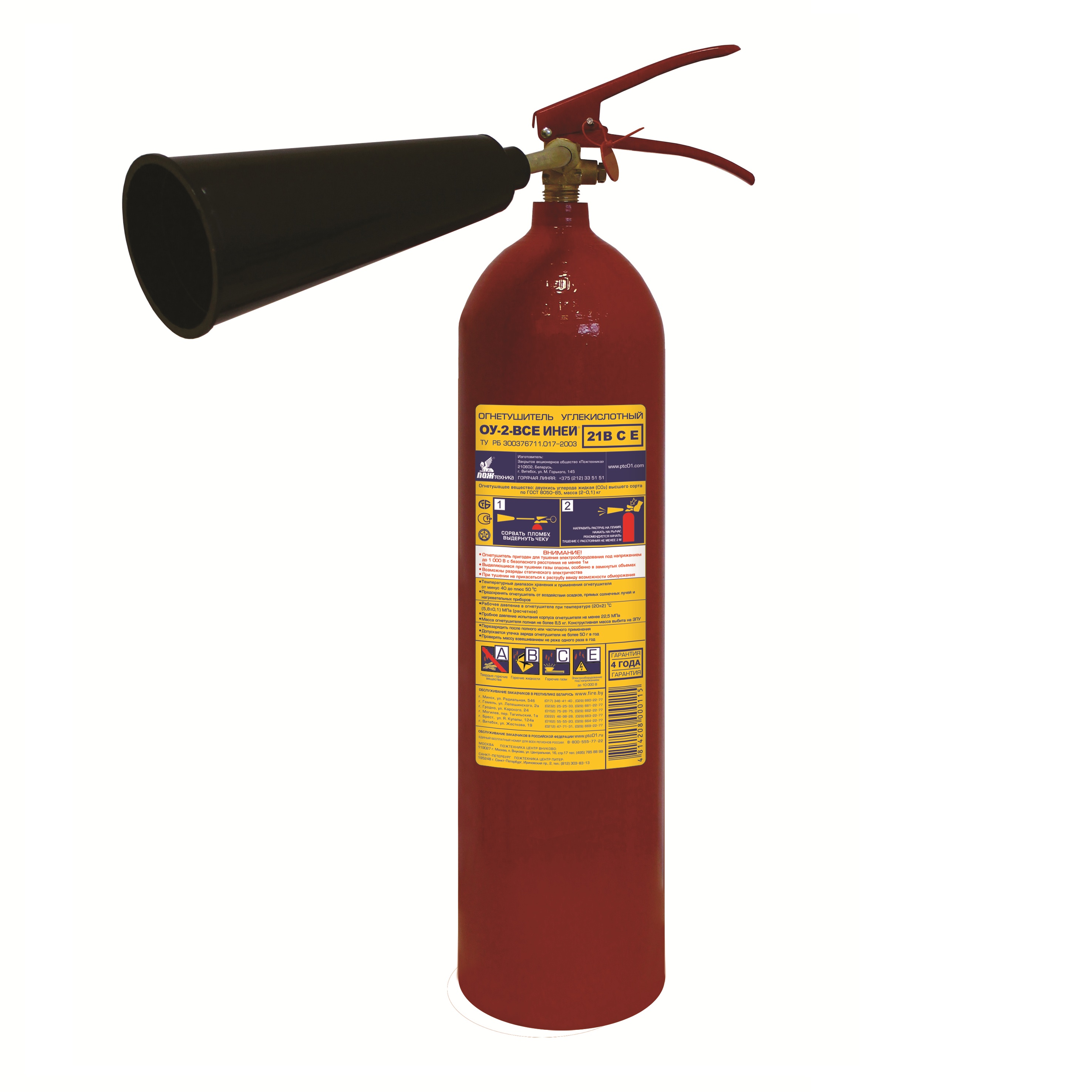 Масса огнетушащего вещества, кг- 2-0,1 кг